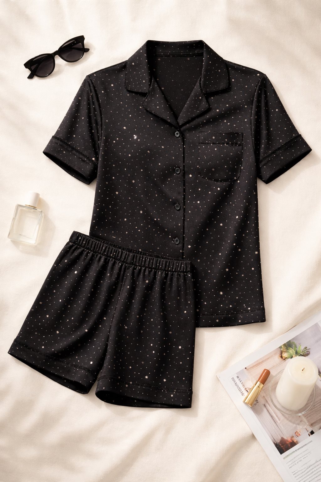 Bộ đồ ngủ Pijama ngắn tay, đan sen họa tiết Basic