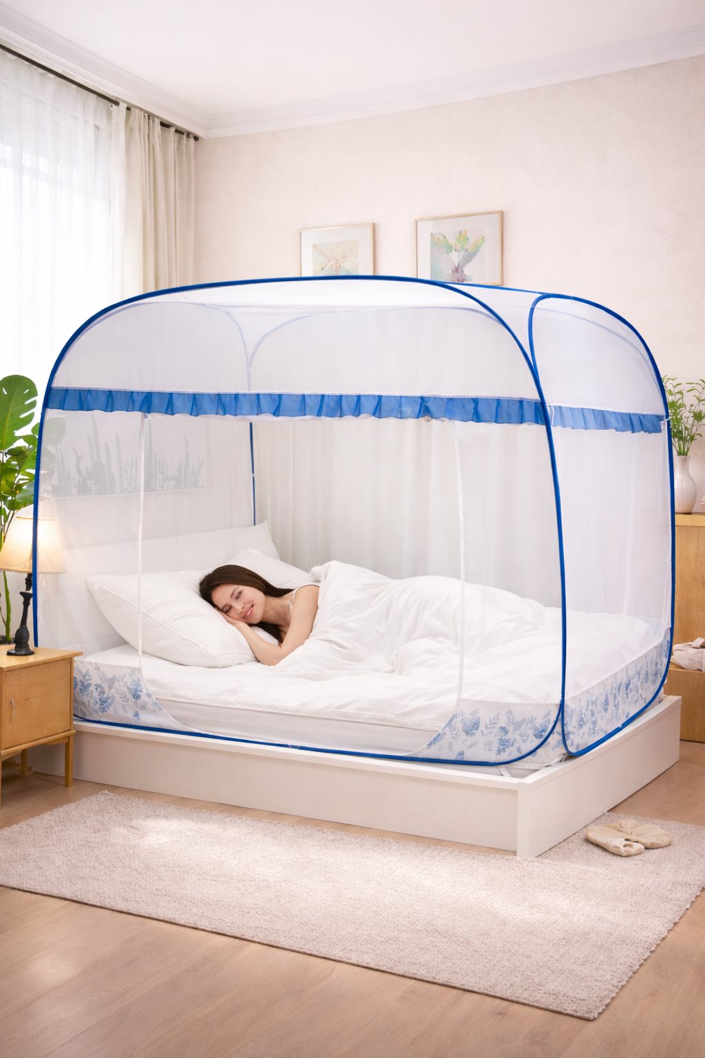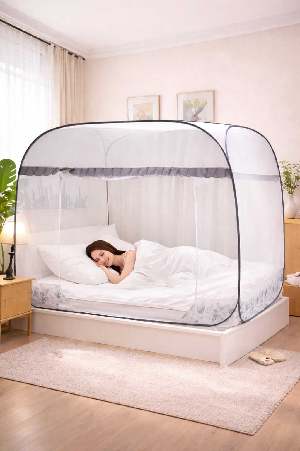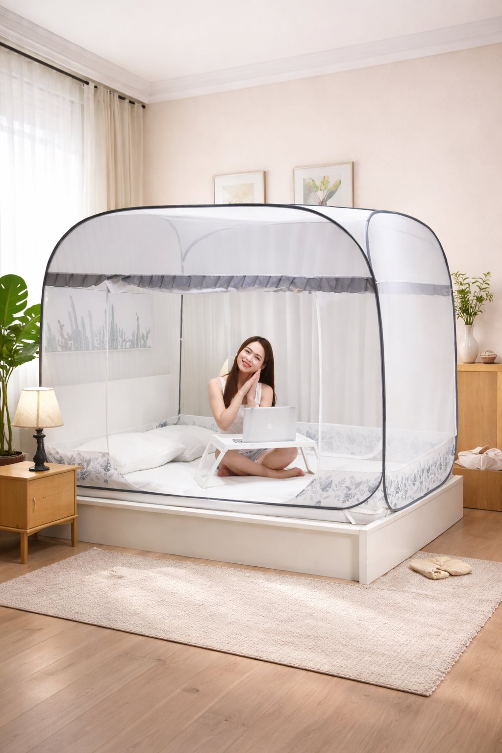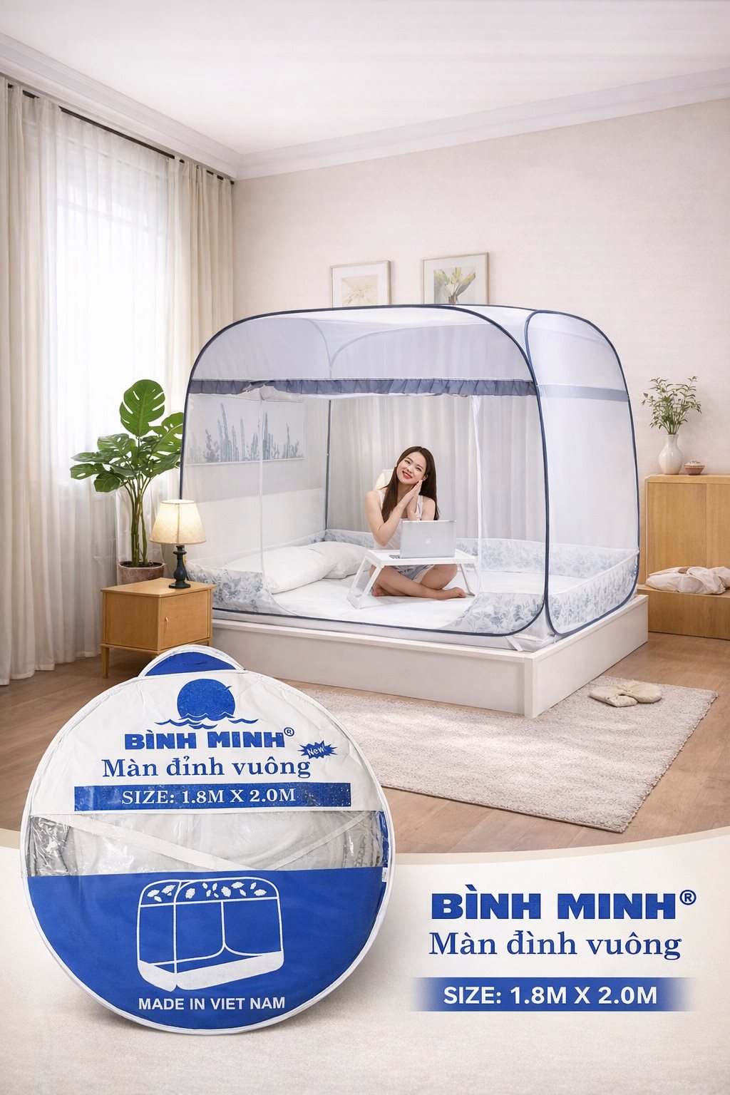Màn chụp chống muỗi đỉnh vuông tự bung – Giải pháp ngủ ngon không lo muỗi