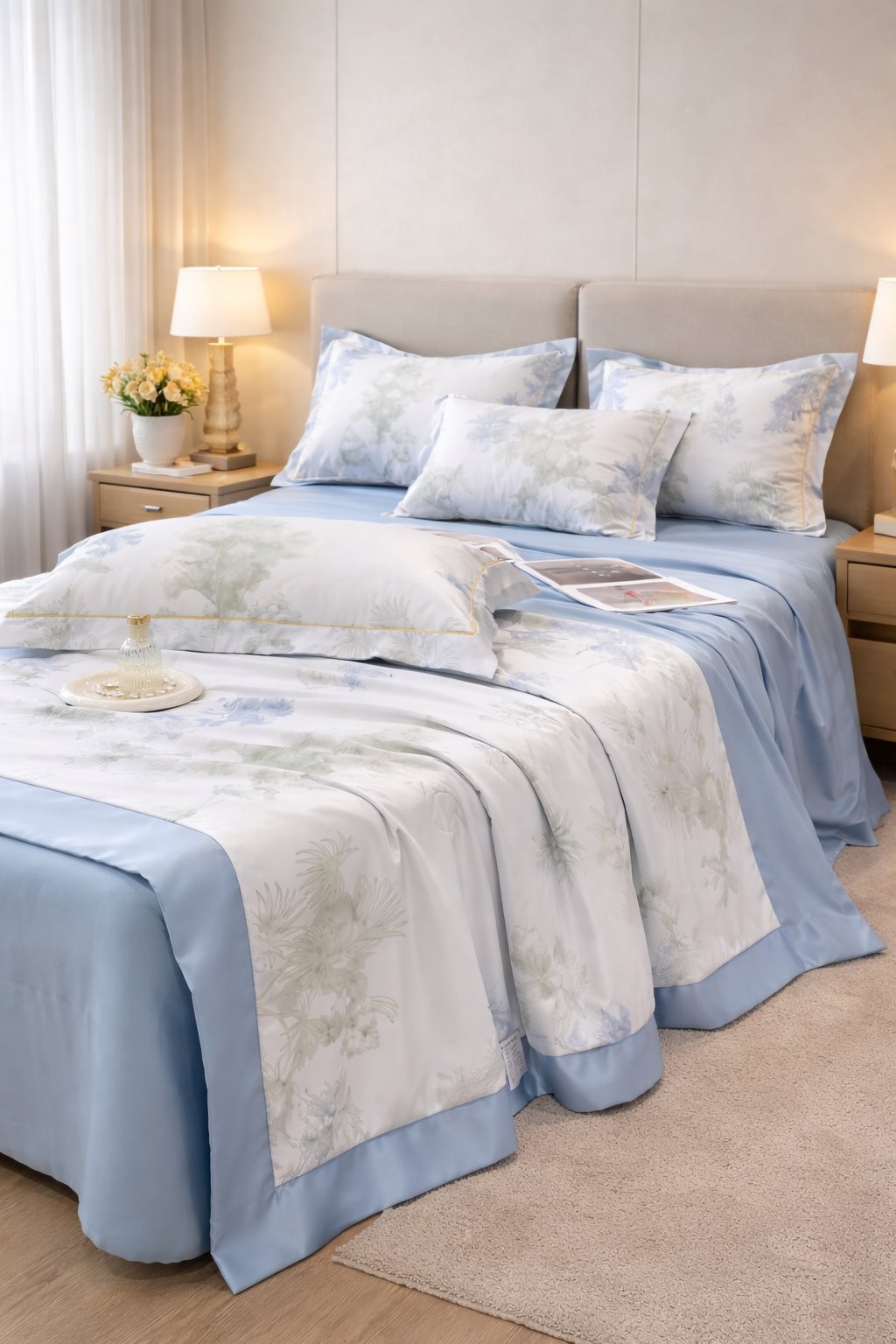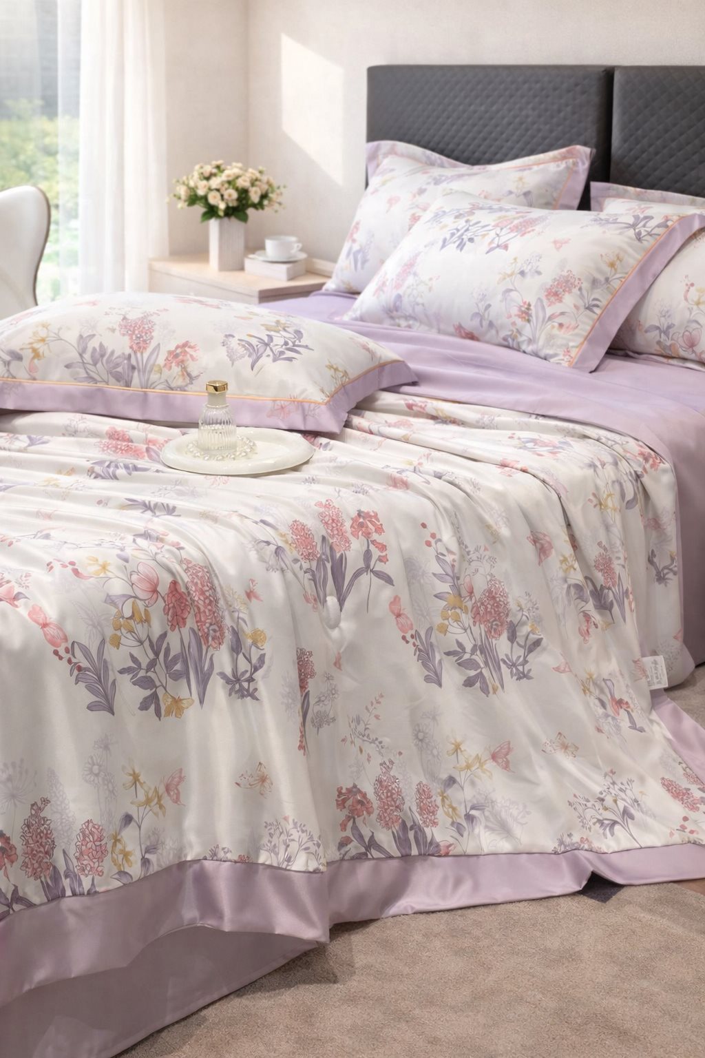 Bộ Chăn Ga Gối Lụa Thái Nhập Khẩu Cao Cấp, Chất Liệu Lụa Thái Mềm Mịn, Thoải Mái, Thoáng Mát, Chăn Đã Có Ruột Mỏng